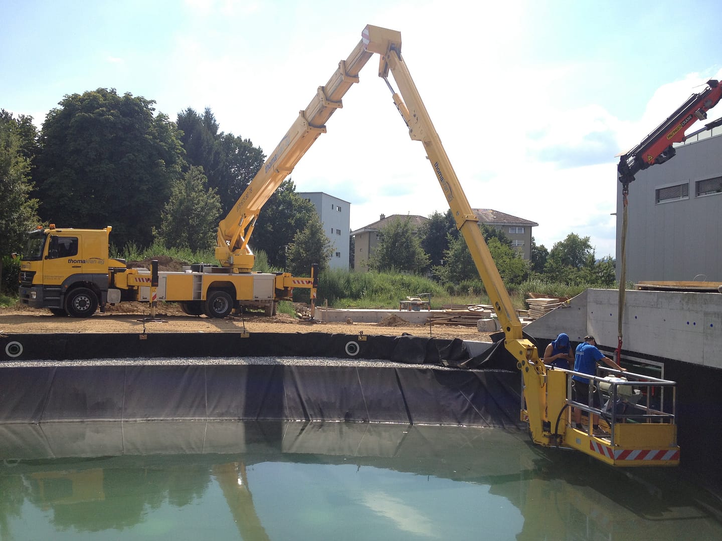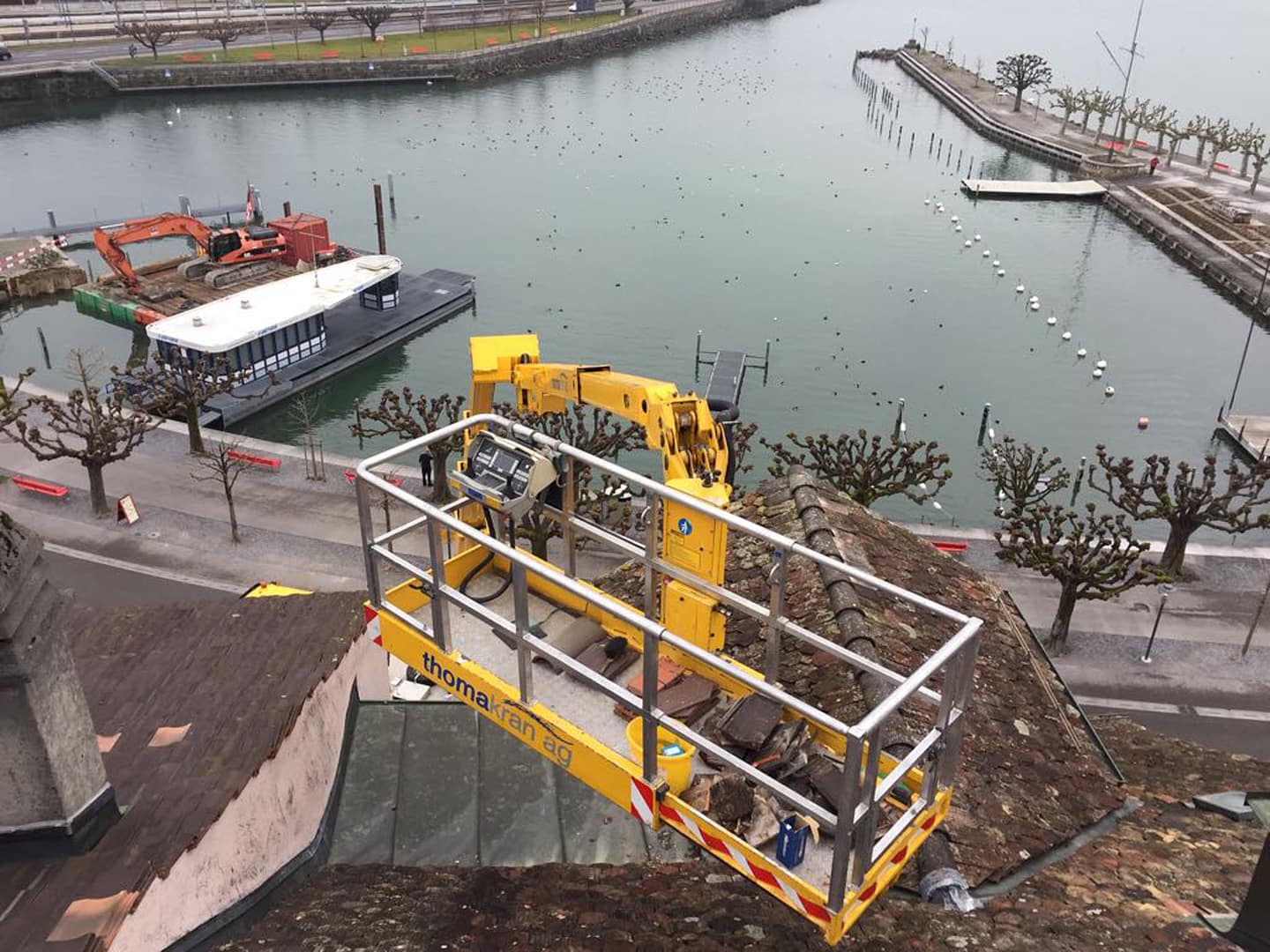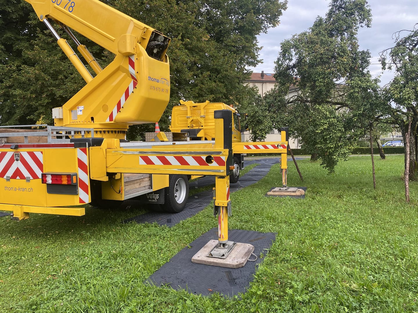 Mit unserer LKW-Arbeitsbühne, auch Hebebühne genannt, sind Arbeiten in bis zu 47 Meter Höhe möglich. Das Arbeiten mit der Arbeitsbühne erfordert je nach Art und Standort eine gute Planung. Gerne koordinieren wir für Sie die Arbeiten, holen Bewilligungen für Strassensperrungen ein und organisieren Lichtsignalanlagen, damit Sie auch in luftiger Höhe sicher arbeiten können.