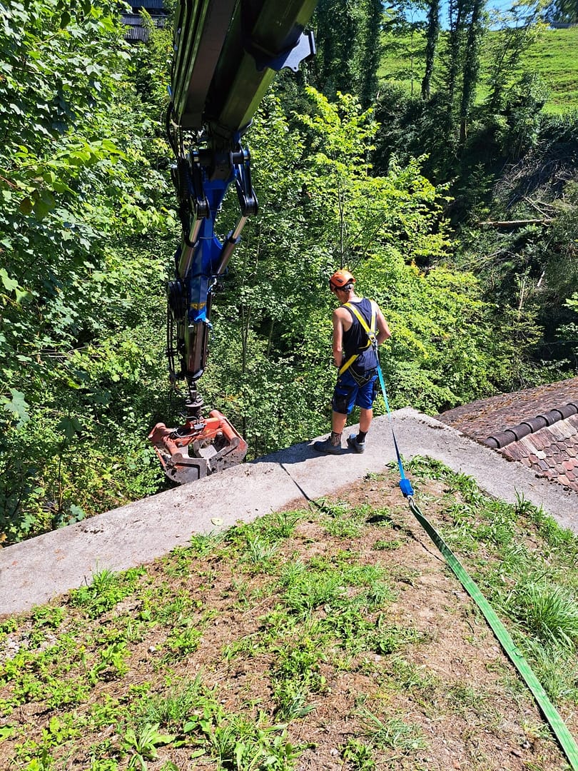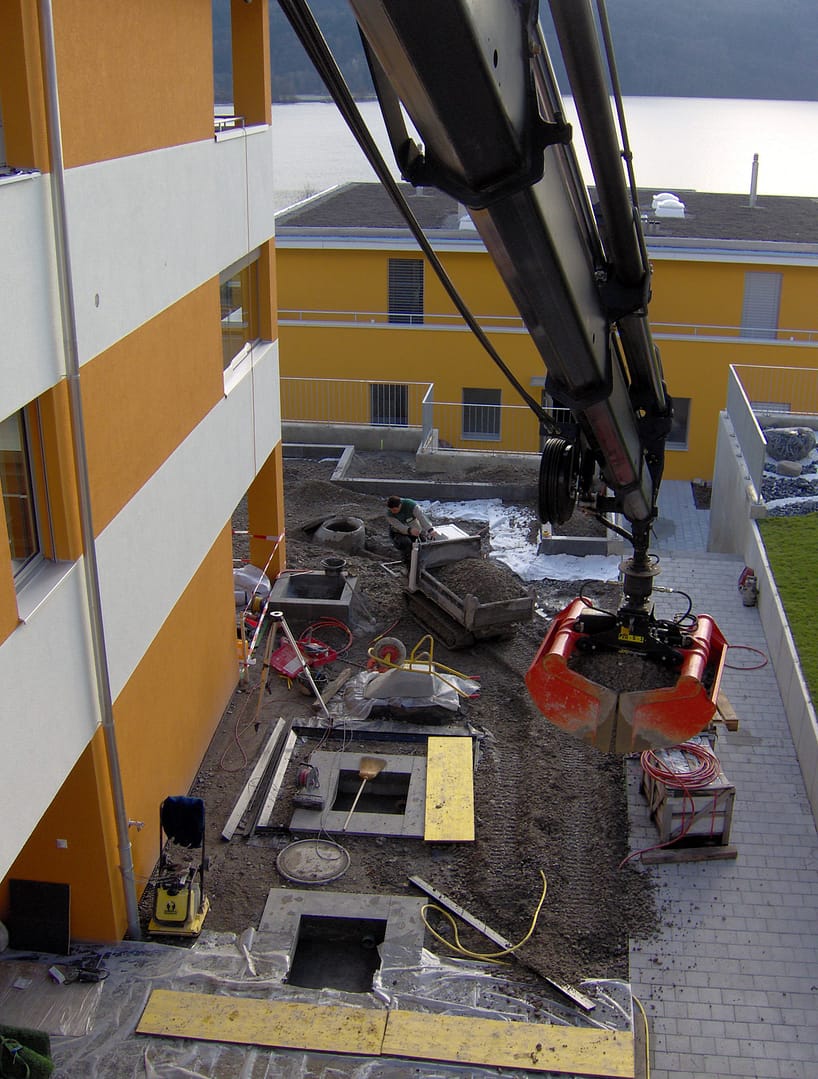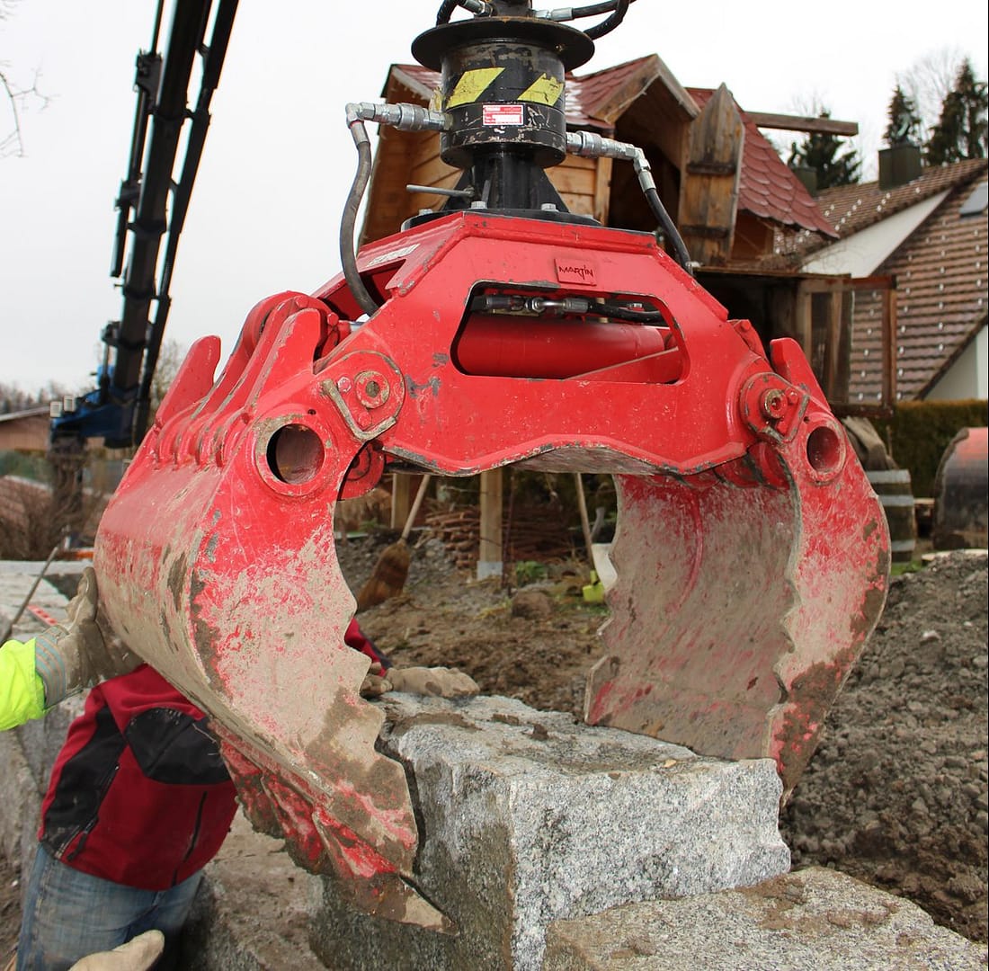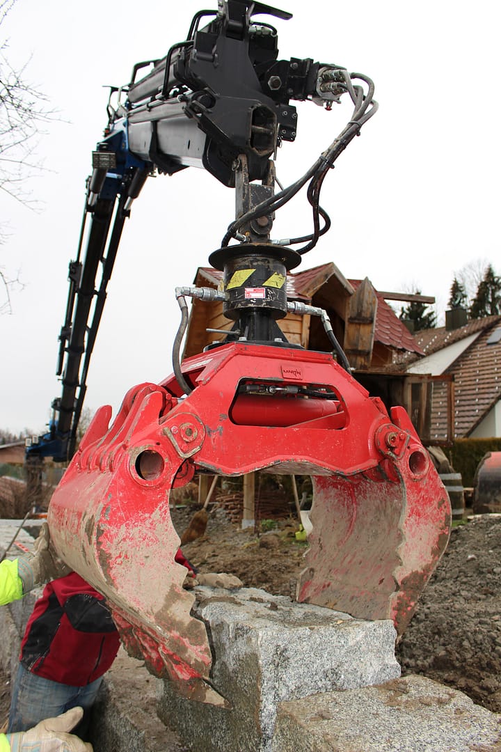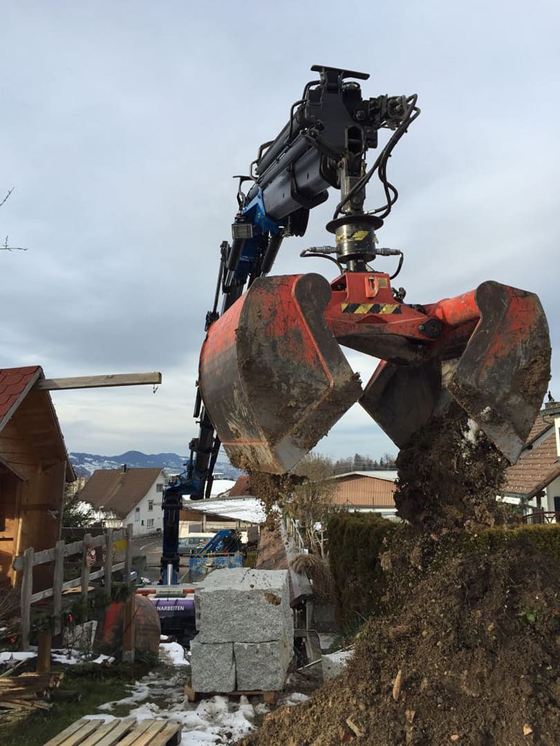 Effizient und mit viel Know-how erledigen wir entweder mit dem Zweischalen- oder den Stein- und Holzgreifern diverse Greiferarbeiten wie z.B. das Greifen von Humus, Kies- oder Schottermaterial in Gärten, auf Terrassen oder Dächern oder das Erstellen einer Steinmauer.