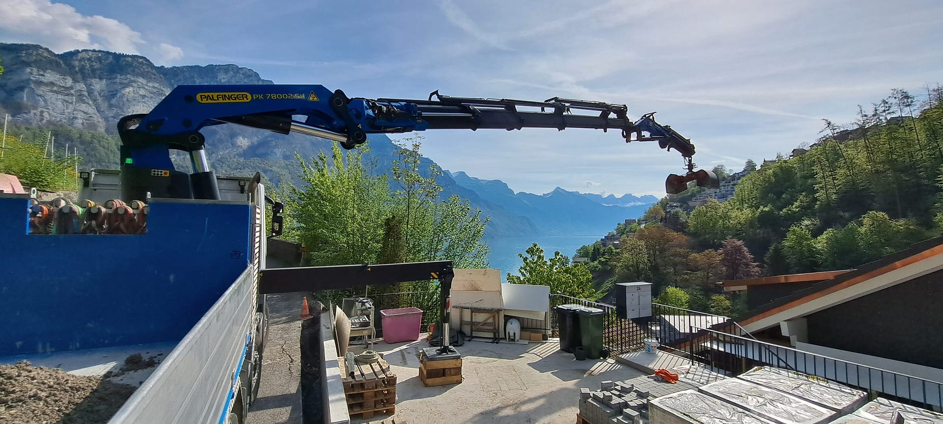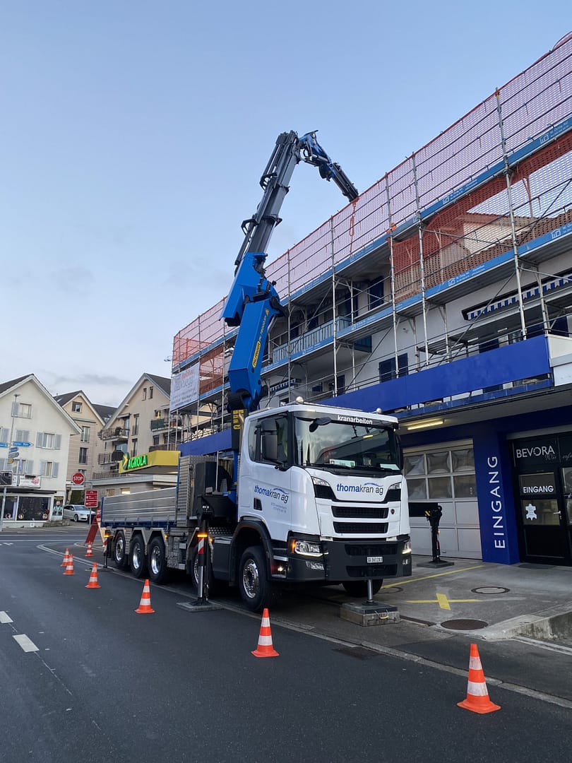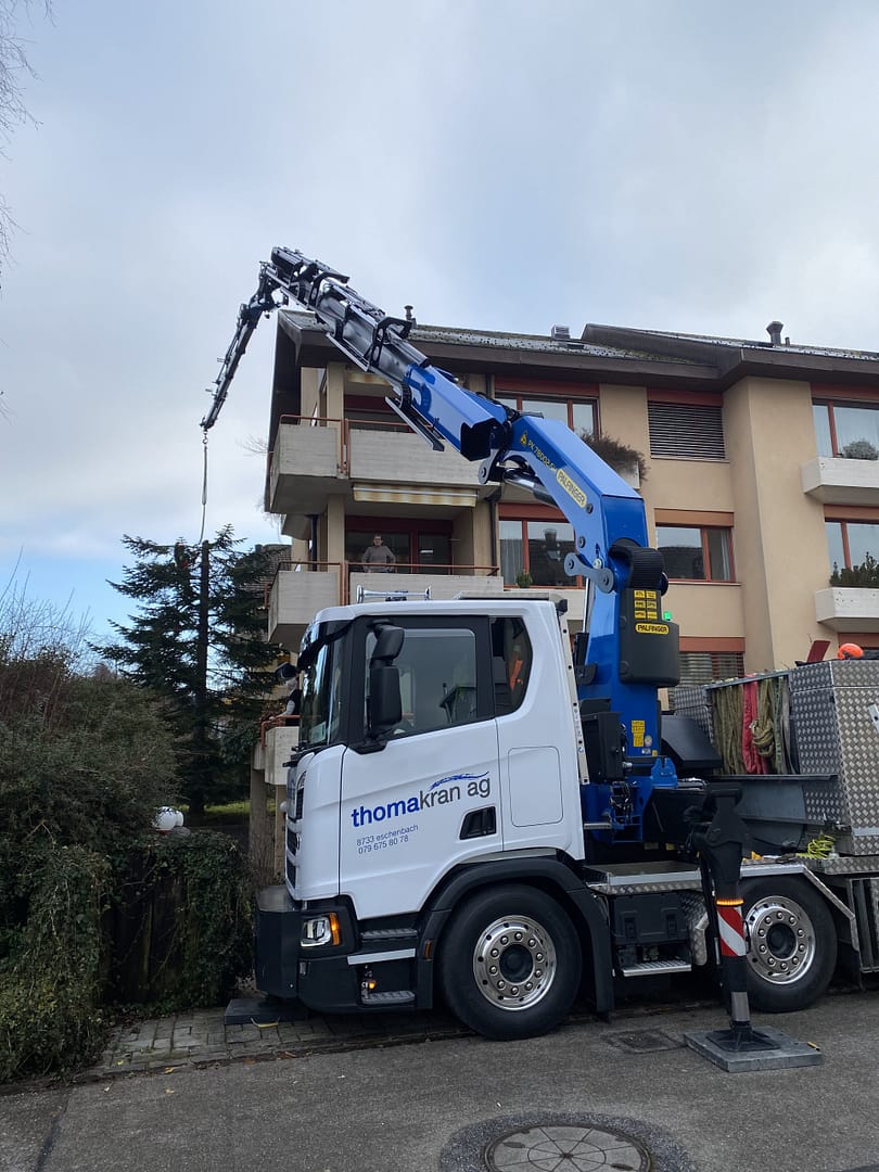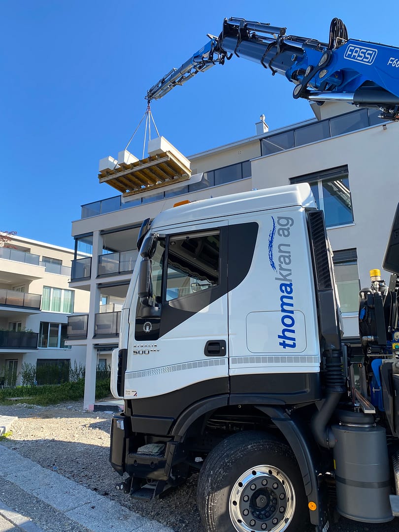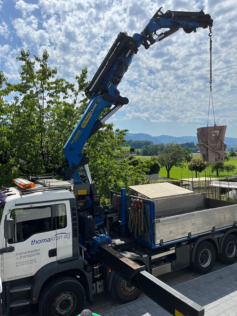Wir haben verschiedene Kranfahrzeuge mit dem nötigen Zubehör wie Funksteuerung, Seilwinde, Greifer, Palettengabel, Bauschuttmulde, Betonkübel und Glassauganlagen. Um alle Hebearbeiten abdecken zu können, organisieren wir wo nötig einen Pneukran. Gerne planen und führen wir für Sie alle Arten von Kranarbeiten aus.