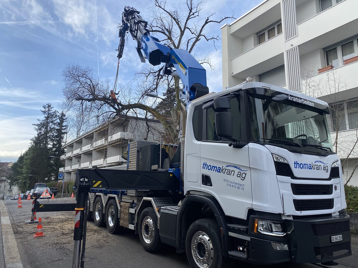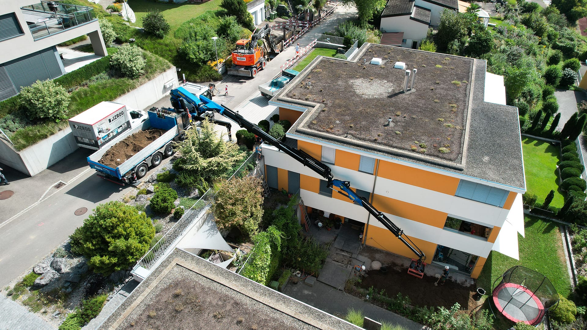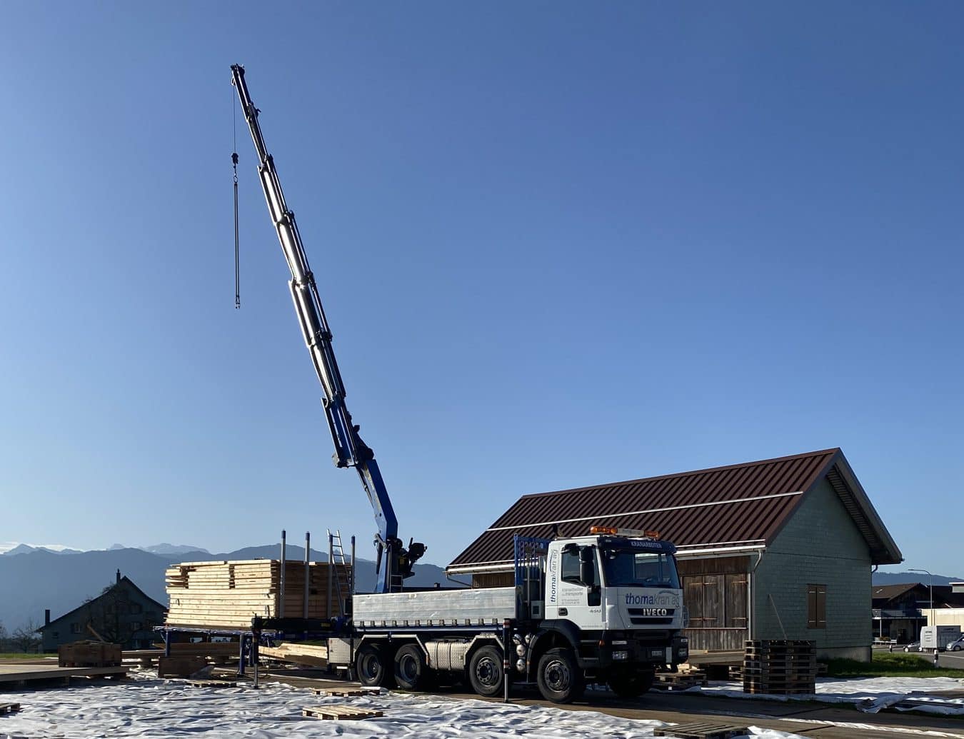 Wir haben verschiedene Kranfahrzeuge mit dem nötigen Zubehör wie Funksteuerung, Seilwinde, Greifer, Palettengabel, Bauschuttmulde, Betonkübel und Glassauganlagen. Um alle Hebearbeiten abdecken zu können, organisieren wir wo nötig einen Pneukran. Gerne planen und führen wir für Sie alle Arten von Kranarbeiten aus.
