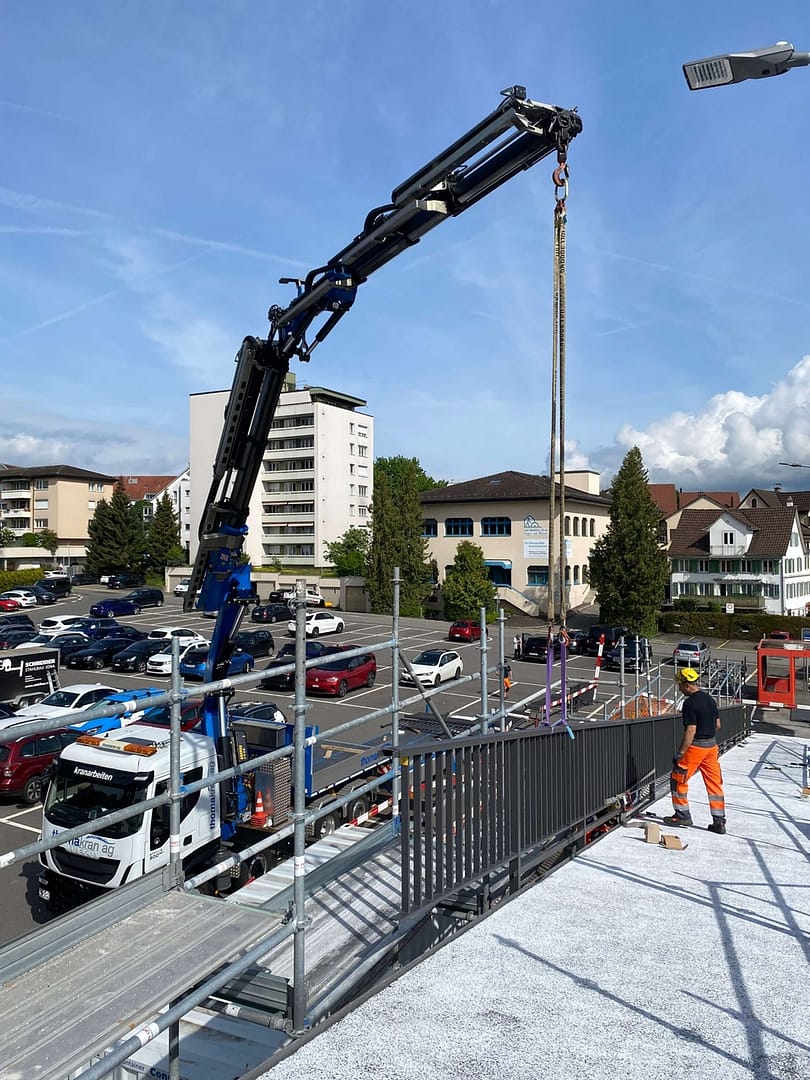 Unsere modernen Spezialfahrzeuge sind optimal ausgestattet. So können wir Lasten in verschiedensten Höhen und Abständen heben - mit dem Kran und den geeigneten Hebeinstrumenten wie Greifer, Glassauger, Seilwinde und weiterem Zubehör. Die motivierten und erfahrenen Kranführer verstehen ihr Geschäft, arbeiten sorgfältig, centimetergenau und gehen auf die individuellen Bedürfnisse der Kunden ein.