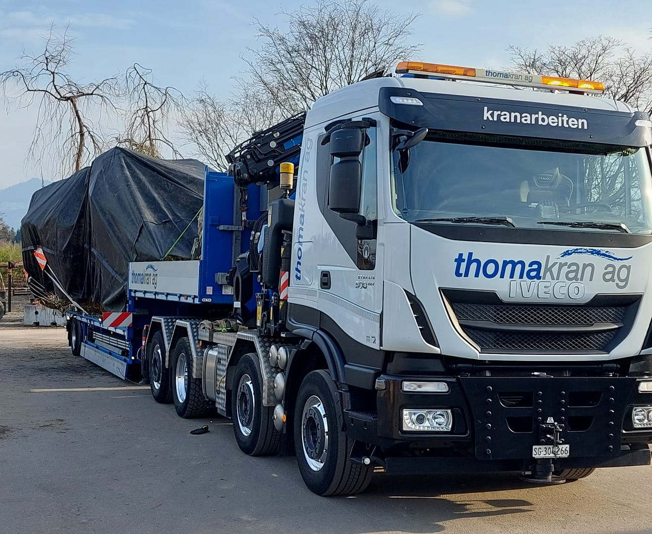 Wir transportieren Ihre Ware und platzieren sie an Ort und Stelle – mit unseren leistungsfähigen Lastwagen inkl. Kranaufbauten verschiedenster Grössen.