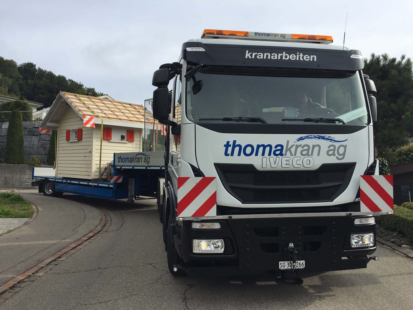 Unsere Kranfahrzeuge mit Anhänger oder Sattelauflieger bieten sich neben dem Heben auch an um Ware zu transportieren. Wir transportieren Bauelemente und Baumaterialien aller Art, Pflanzen, Gartenhäuser, Spielgeräte, verschieben Baustelleninventar, zügeln Industriemaschinen und vieles mehr. Der Umwelt zu liebe fahren wir nur mit Kranfahrzeugen mit Russpartikelfilter Euro 5 und 6.