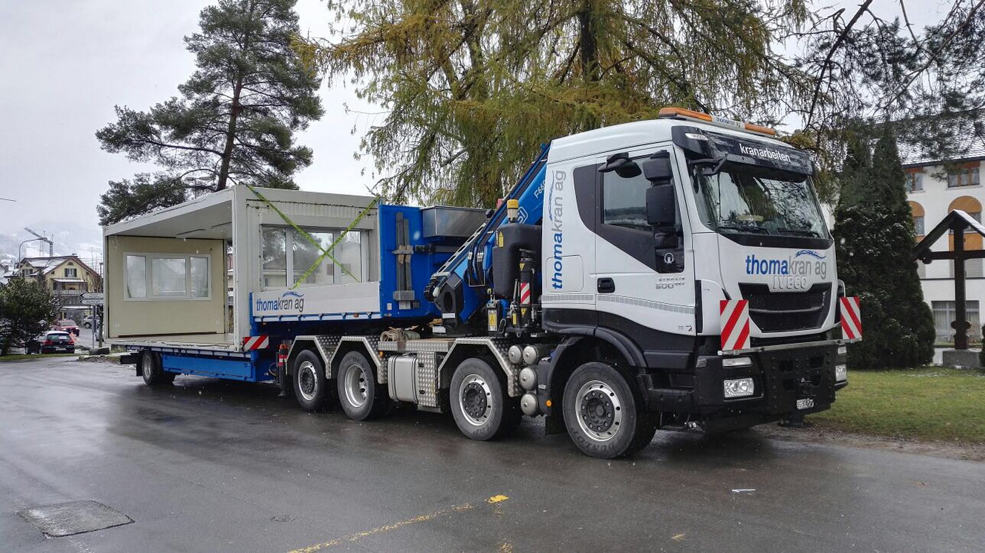 Wir haben langjährige Erfahrung mit Spezialtransporten und im fachgerechten Umgang mit Überbreite, Überhöhe und Überlänge. Dafür setzen wir die geeigneten Spezialfahrzeuge mit Kran ein, kombiniert wo nötig mit passendem Zubehör. So wird überdimensionale, übergrosse Ware fachgerecht verladen, transportiert und an Ort und Stelle platziert. Aus einer Hand organisieren wir für Sie auch die nötigen Bewilligungen, Begleitfahrzeuge und Strassensperrungen.