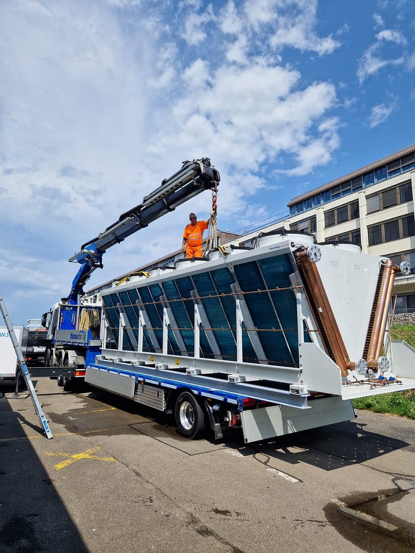 Das Aufladen und Abladen mit dem Kran erleichtert die Arbeit und spart gleichzeitig Zeit und Kosten. Dank unseren verschiedenen Spezialfahrzeugen mit Hebemittel und Anhänger sowie dem notwendigen Zubehör können wir uns an die äusseren Umstände und das Ladegut optimal anpassen.
